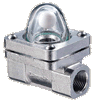 The liquid enter the sight glass allowing a quality and substance observation. Additional sphere component allow a quantitative trend indication of flow rate.